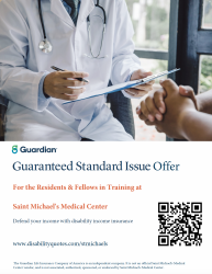 Guardian is one of the premier disability insurance companies for physicians. Guardian GSI disability insurance offers are available to residents and fellows at Saint Michael's Medical Center and more than 180 other premier hospitals nationwide.